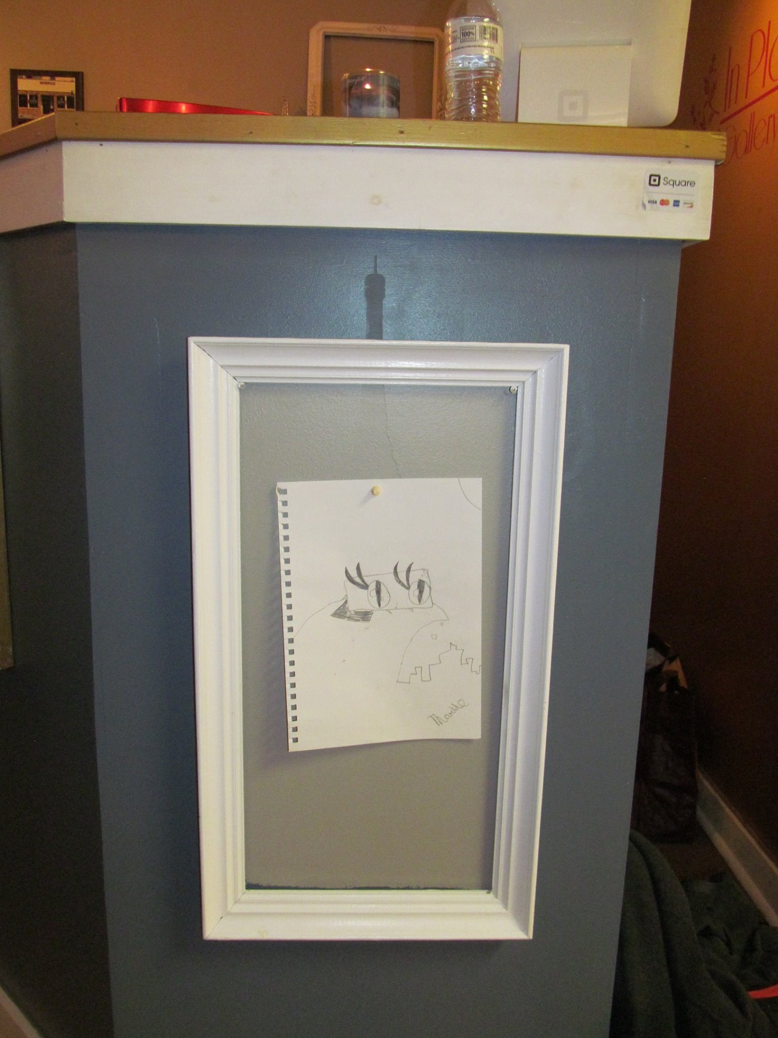 Jon provided my daughter with paper and a pencil and she was invited to draw something while we talked. She did, relishing in the opportunity to create art inspired by her surroundings. Making the event even more special, Jon framed her newly created masterpiece and hung it up in the gallery.